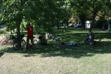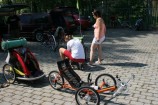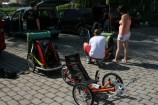 Dorazila nakonec jen polovina prihlasenych, neb druhou polovinu dorazila matka priroda. Po velkych pripravach jsme vyrazili proti proudu po pravem brehu do Podebrad. Tam jsem nechali deti vyblbnout na hristi, dali si neco dobreho na zub a vyrazili jsme zpet. Grilovani, petanque a rallye na cipu poloostrova u zdymadla bylo peknou teckou za krasnym dnem.